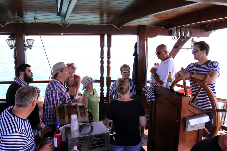 A hagyományos hajós csapatépítő játékok kiegészítéseként ajánljuk a vizes csapatépítéseinket is megrendelőink számára. Ha vizes csapatépítésről beszélünk, akkor a Balaton a legjobb választás. Nem feltétlenül kell fürdőruhát viselni, adott feladatsorok elvégezhetőek mártózás nélkül is. Rengeteg vizes feladattal állunk rendelkezésetekre, mint például az evakuáció, amikor a csapatnak el kell jutnia egy kapszulához 2 fős gumicsónakkal, illetve a hajó körbeevezése a másik feladatunk SUP-ok segítségével, a következő feladat pedig a bálnavadászat, ekkor a vízben úszó bálnát a hajóról kell dárdák eldobásával levadászni, amelyek a hajóhoz rögzítve vannak. Nyertes csapatunk a játék végén jutalomban részesül. Kérés esetén tudunk biztosítani különböző étel és italcsomagokat, a fedélzeten akár grillezésre is van lehetőség, ekkor kiváló személyzetünk friss alapanyagokból készíti el az ételeket. Italcsomagok közül kérhető alkoholos, illetve alkoholmentes is egyaránt. Különböző kiegészítő csomagokat is tudunk biztosítani, mint például a snack és sajttál, de bármilyen egyéni kérést is tudunk teljesíteni. Hajóink Siófokon találhatóak, de az sem probléma, ha Ti Balatonfüreden, Keszthelyen, Fonyódon, Tihanyban vagy a Balaton bármely pontján vagytok, az indulást bárhonnan megtudjuk valósítani. Felejthetetlen csapatépítés Budapesttől csupán 100 km-re.
